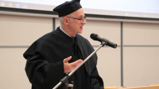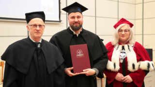 W imieniu absolwentów głos zabrała Aleksandra Lisiak-Matlak stwierdzając m.in.: „W imieniu studentów XXXV edycji studiów MBA oraz wcześniejszych edycji składamy Państwu najserdeczniejsze podziękowania za czas, wiedzę i uważność, które towarzyszyły nam przez całą tę drogę. Dziękujemy Wykładowcom za wymagania, które mobilizowały, za praktyczne spojrzenie, które porządkowało chaos, i za inspirację, która zostaje na długo po ostatnich zajęciach. Dziękujemy za dyscyplinę myślenia, którą Państwo w nas budowali: za pytania trudniejsze niż odpowiedzi, za konsekwencję w dochodzeniu do sedna, za pokazywanie, że w zarządzaniu nie ma magii, jest metoda, odpowiedzialność i odwaga wyboru. W sposób szczególny składamy podziękowania Kierownikowi studiów podyplomowych MBA, prof. dr hab. Dariuszowi Zarzeckiemu, za merytoryczne przywództwo, konsekwencję w utrzymywaniu wysokich standardów oraz za stworzenie programu, który realnie rozwija i wymaga. Dziękujemy za jasny kierunek, za dbałość o jakość i za to, że pod Pańskim kierownictwem te studia były czymś więcej niż cyklem zajęć — były doświadczeniem formującym. Z całego serca dziękujemy również Kadrze sekretariatu za cierpliwość, sprawność i dyskretną troskę o to, aby wszystko „działało” wtedy, gdy my byliśmy pochłonięci projektami, zaliczeniami i terminami. Za życzliwość w sprawach drobnych, które w rzeczywistości były dla nas kluczowe: za szybkie odpowiedzi, porządek w formalnościach, spokój wtedy, gdy nam go brakowało, i pewność, że po drugiej stronie zawsze jest ktoś, kto naprawdę chce pomóc. Dziękujemy za kulturę organizacyjną, którą Państwo współtworzyli każdego dnia — tę niewidoczną, ale fundamentalną, bo bez niej żaden program, nawet najlepszy, nie miałby takiej jakości. Te studia miały dla nas wagę większą niż dyplom. Były próbą charakteru, szkołą decyzji i miejscem, w którym ambicja spotkała się z odpowiedzialnością. Nauczyliśmy się rozumieć liczby, procesy i strategie, ale równie mocno nauczyliśmy się rozumieć konsekwencje: dla ludzi, dla zespołów, dla organizacji i dla nas samych. Wielu z nas przyszło tu po kompetencje, a wychodzi z poczuciem, że najważniejszą zmianą jest sposób myślenia — bardziej krytyczny, bardziej uporządkowany, ale też bardziej pokorny wobec złożoności świata.”