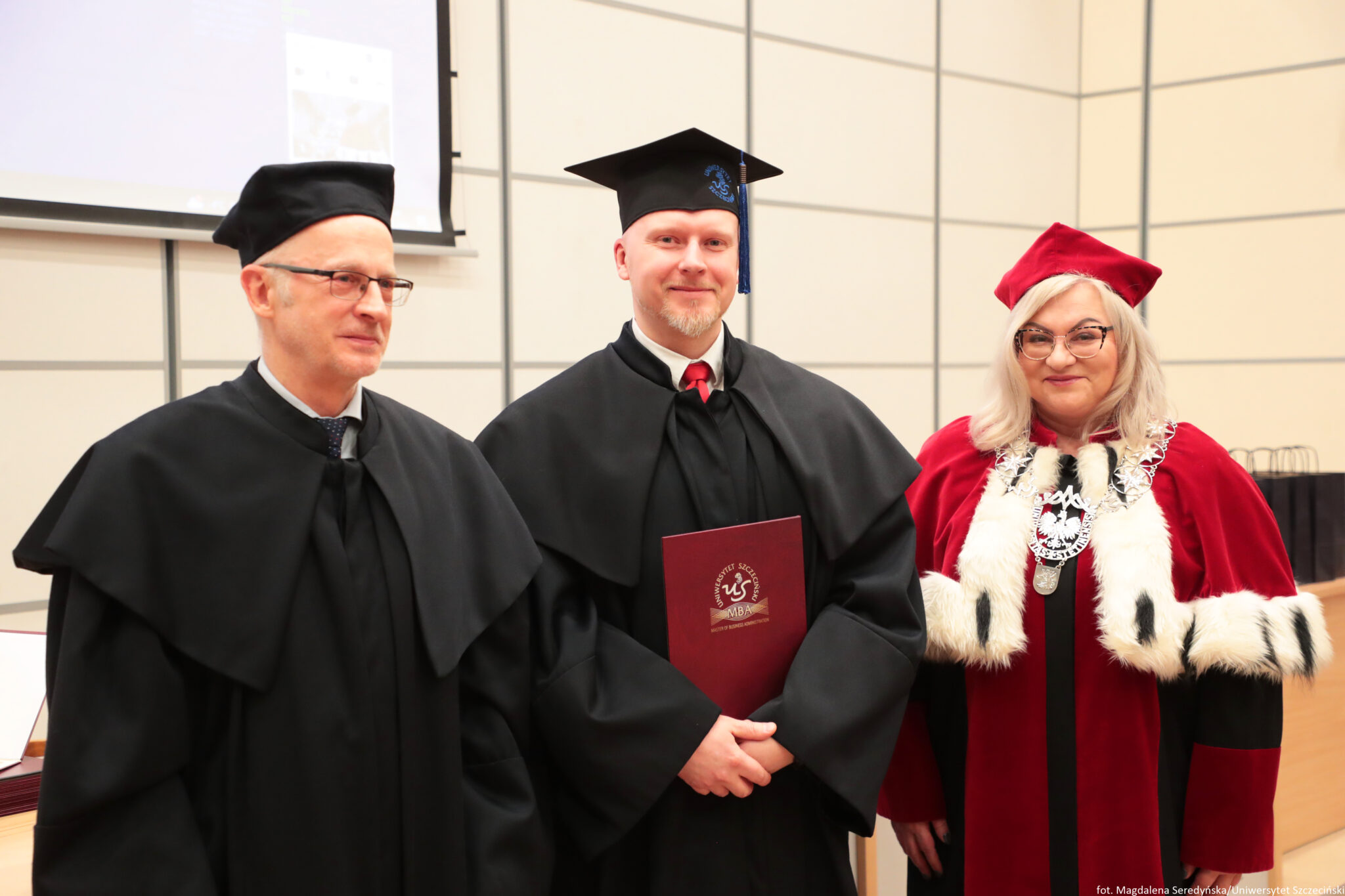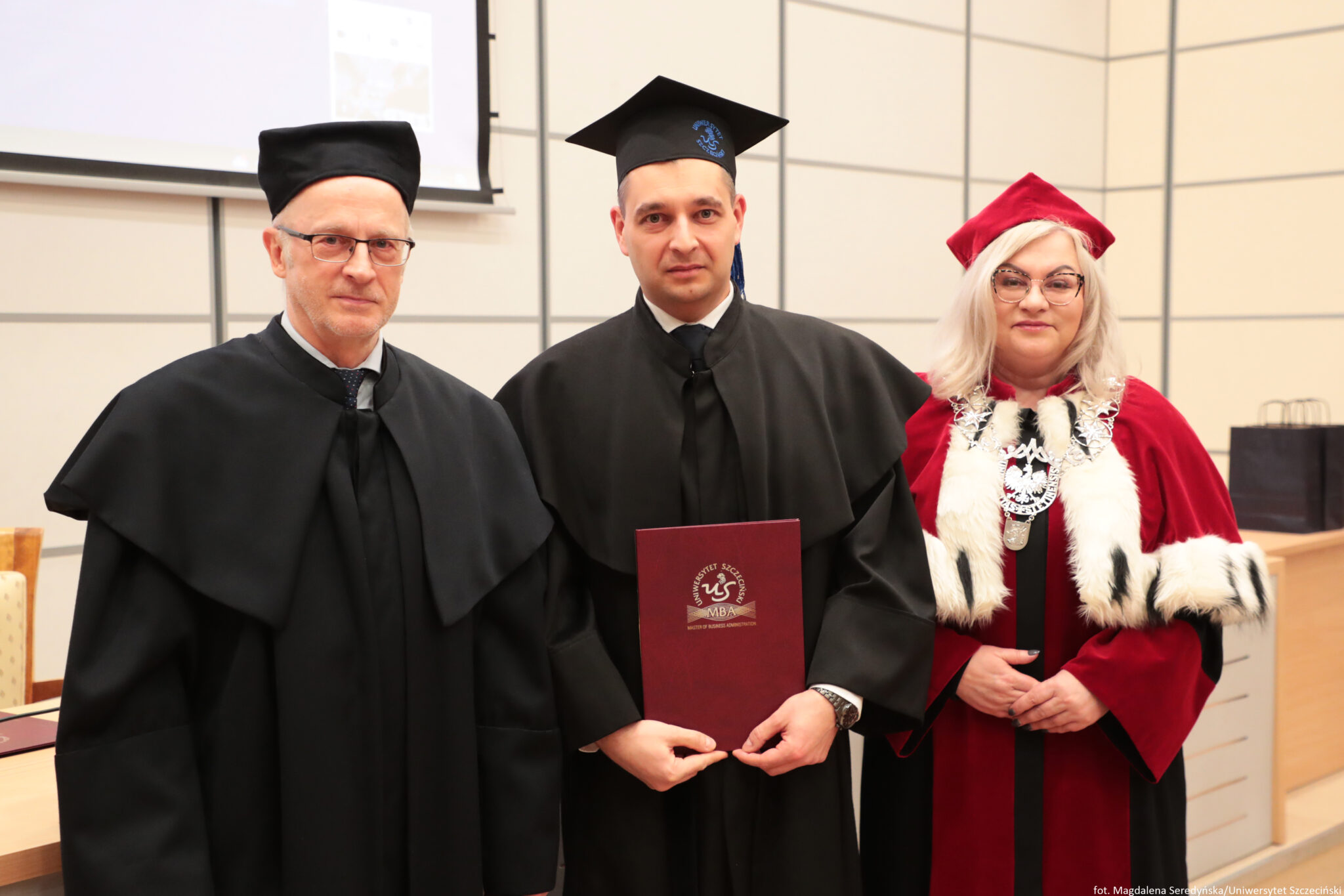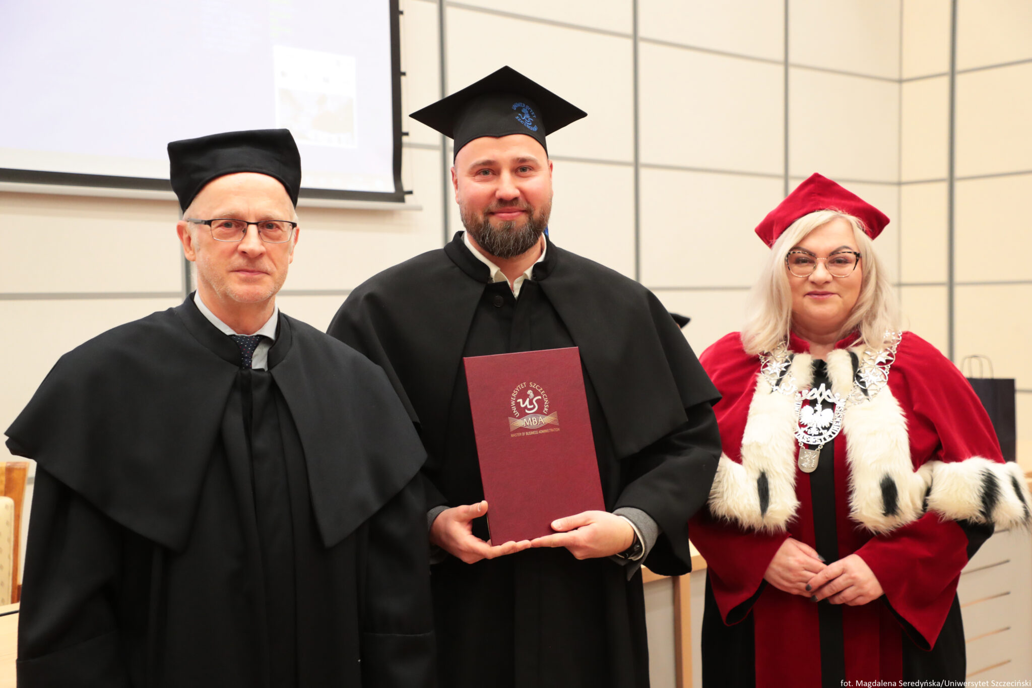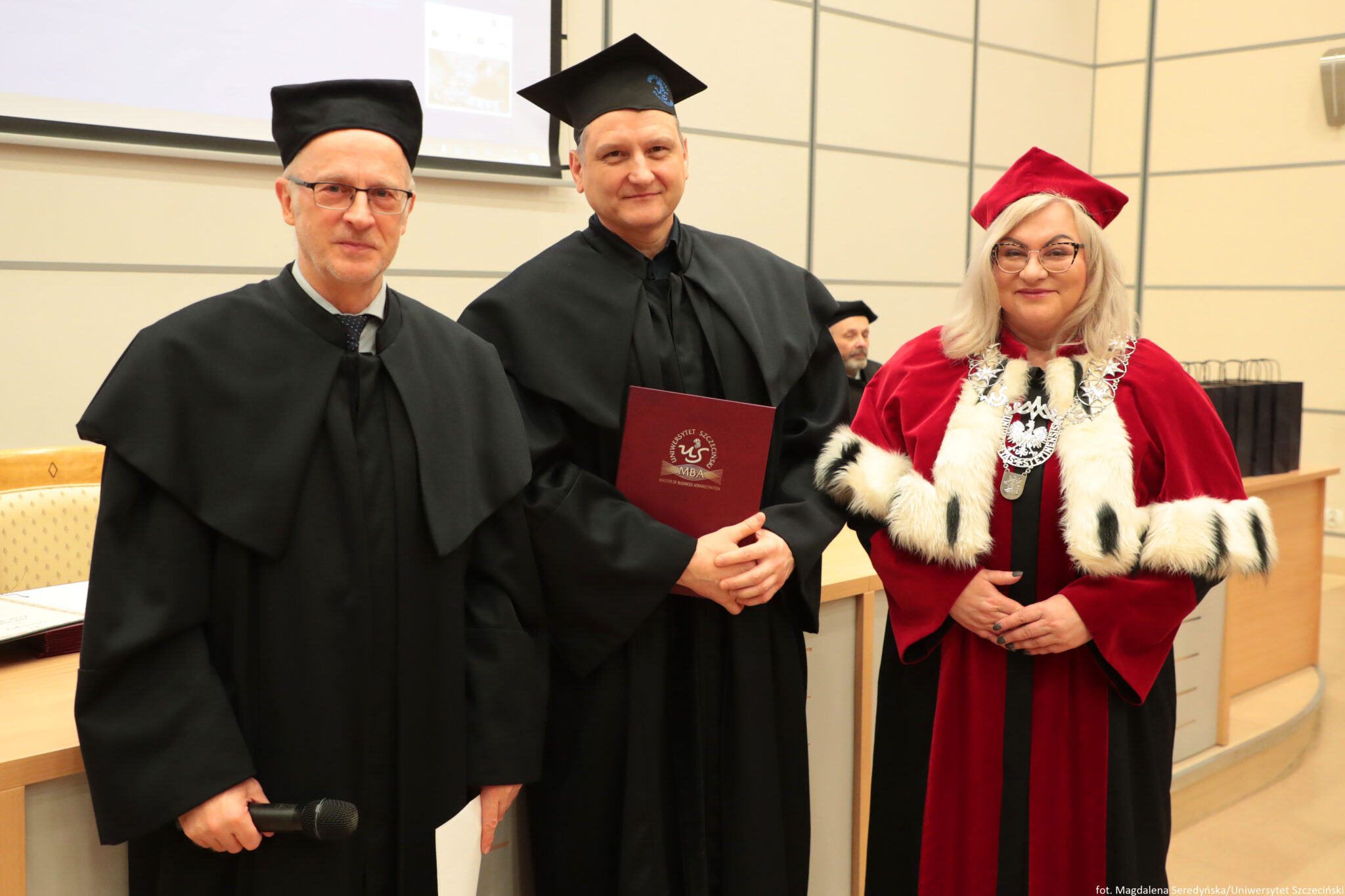 24 stycznia 2026 roku na Wydziale Ekonomii, Finansów i Zarządzania odbyła się uroczystość zakończenia kolejnych edycji studiów Master of Business Administration Uniwersytetu Szczecińskiego. Spotkanie otworzył Kierownik Studiów MBA na US prof. dr hab. Dariusz Zarzecki. Władze uczelni reprezentowali: prof. dr hab. Renata Podgórzańska – Prorektor ds. Kształcenia, dr hab. Iwona Markowicz, prof. US – Dziekan Wydziału, dr hab. Sebastian Majewski, prof. US – Zastępca Dyrektora Instytutu Ekonomii i Finansów.