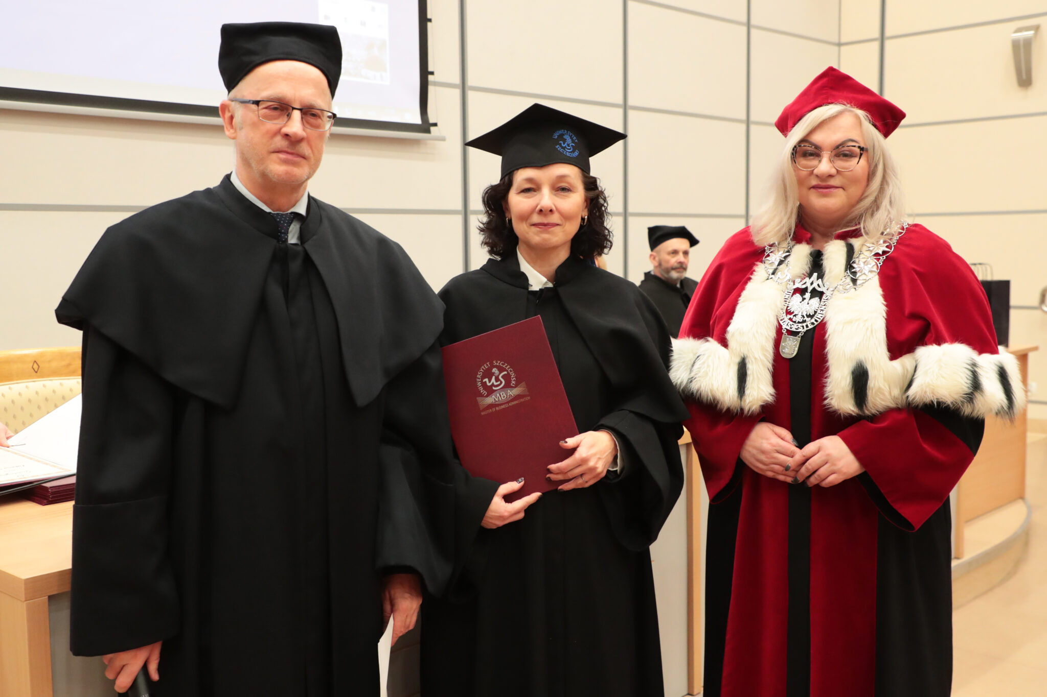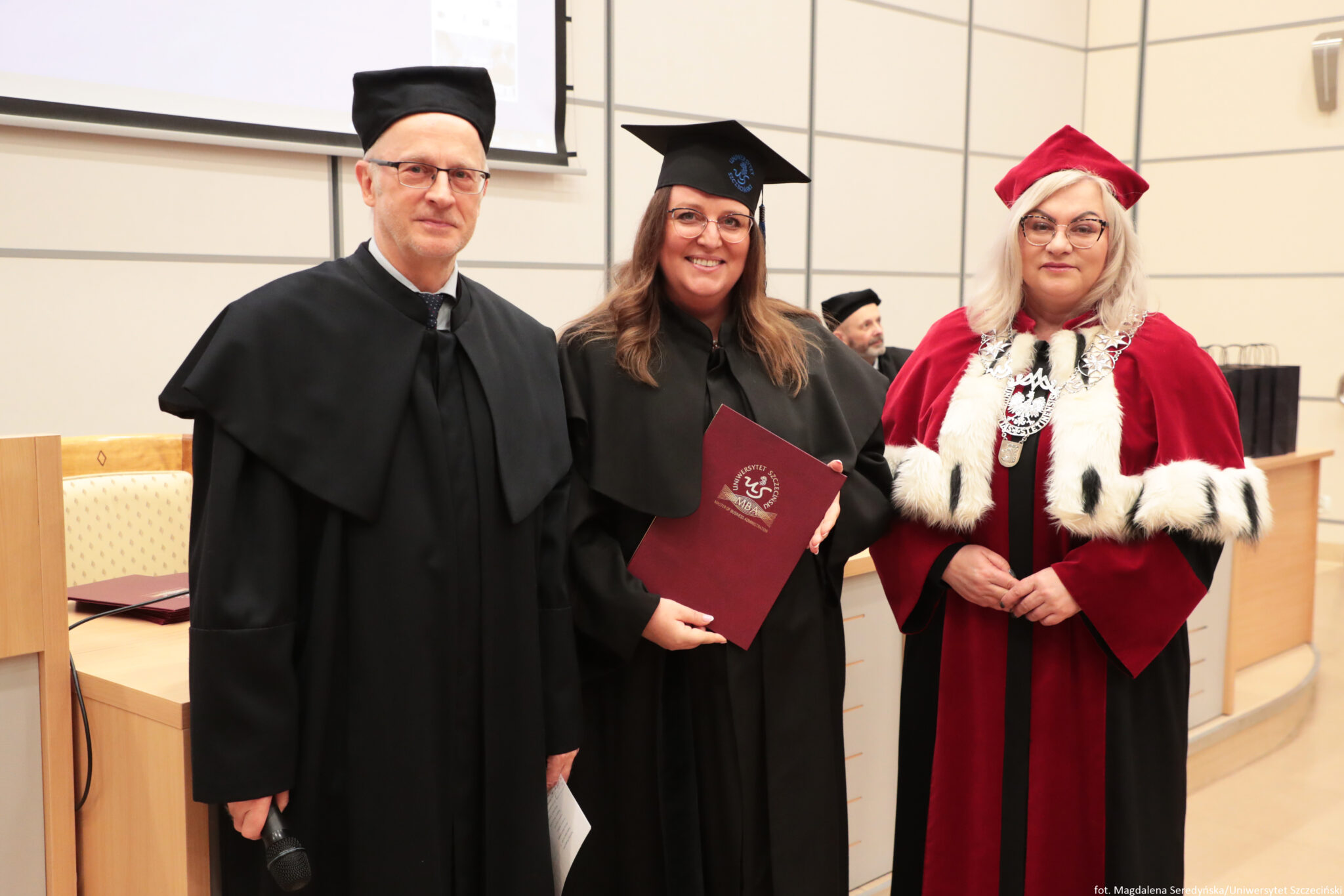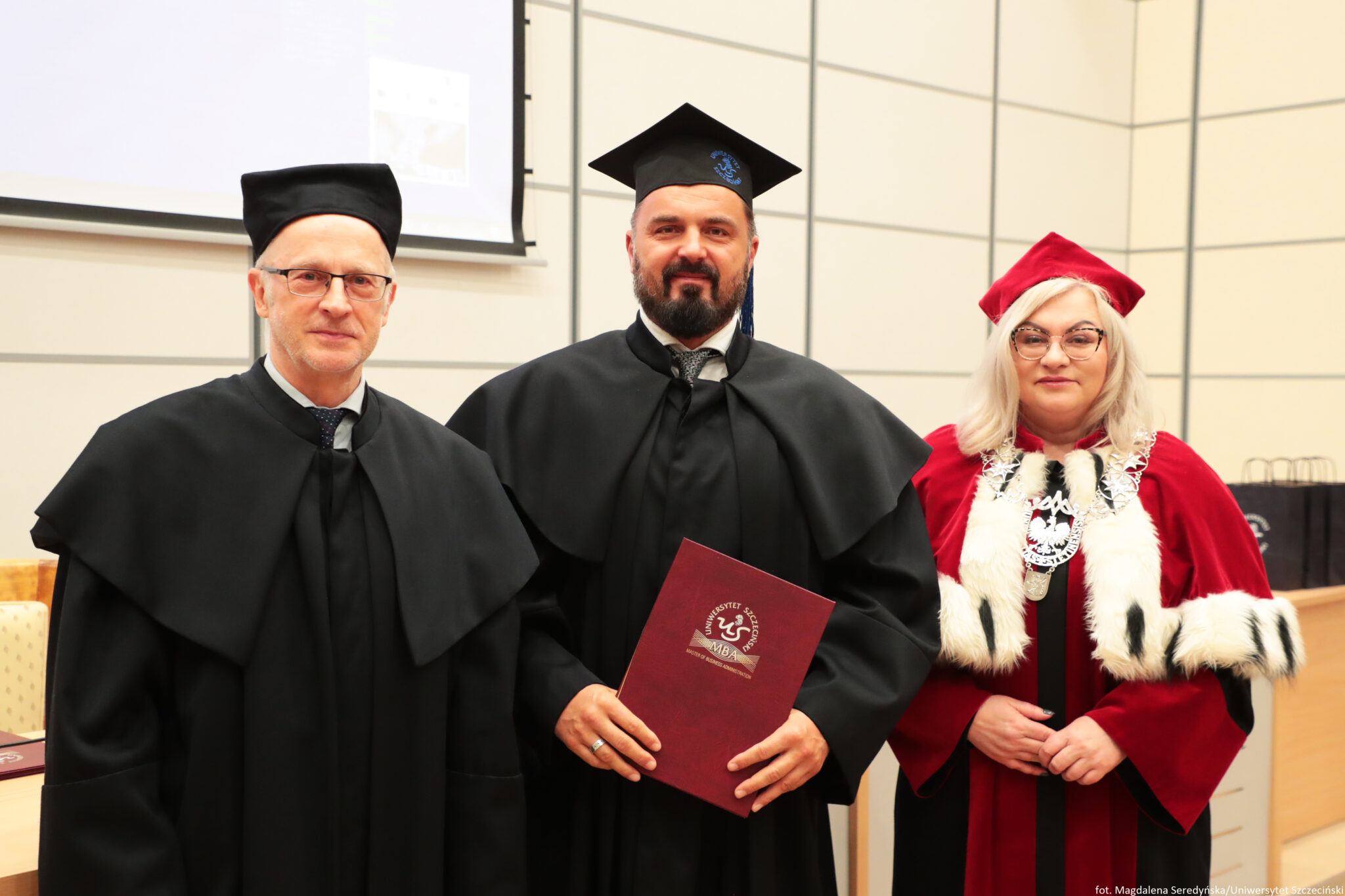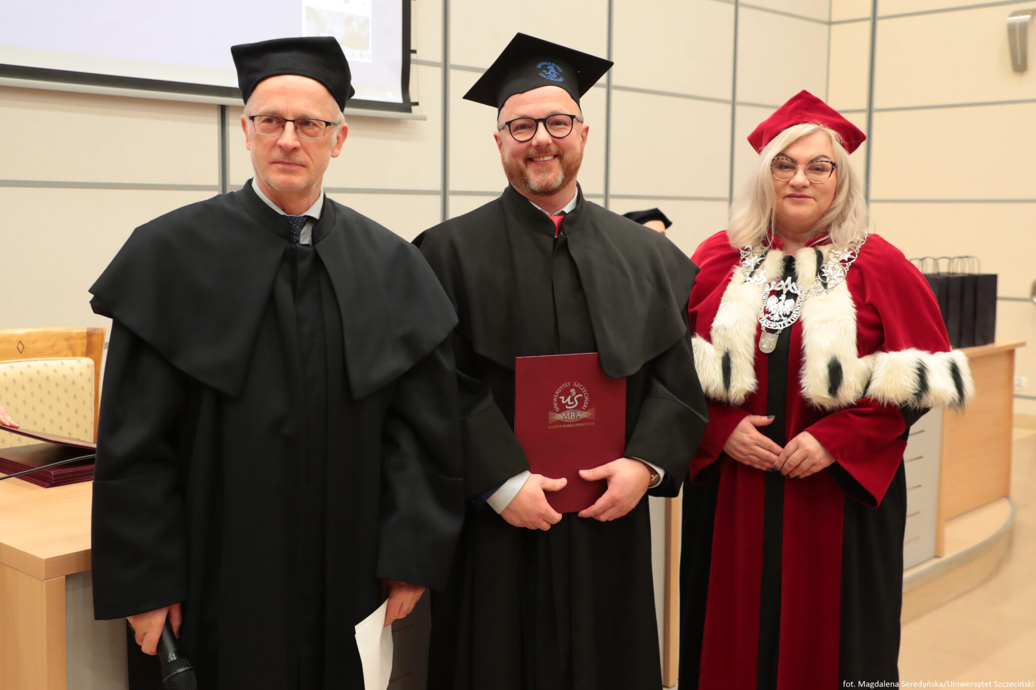 24 stycznia 2026 roku na Wydziale Ekonomii, Finansów i Zarządzania odbyła się uroczystość zakończenia kolejnych edycji studiów Master of Business Administration Uniwersytetu Szczecińskiego. Spotkanie otworzył Kierownik Studiów MBA na US prof. dr hab. Dariusz Zarzecki. Władze uczelni reprezentowali: prof. dr hab. Renata Podgórzańska – Prorektor ds. Kształcenia, dr hab. Iwona Markowicz, prof. US – Dziekan Wydziału, dr hab. Sebastian Majewski, prof. US – Zastępca Dyrektora Instytutu Ekonomii i Finansów.