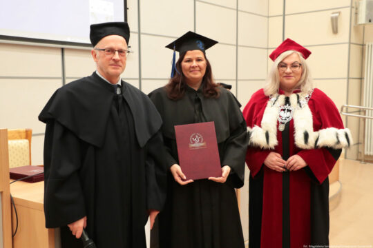 Prof. Katarzyna Kotfis, absolwentka MBA US, która nie mogła osobiście uczestniczyć w uroczystości, przesłała list z podziękowaniami i gratulacjami z nowego miejsca pracy – została zatrudniona na stanowisku profesora w Vanderbilt University i w Klinice Anestezjologii i Intensywnej terapii w Vanderbilt University Medical Center oraz badacza w Critical Illness, Brain Dysfunction, and Survivorship Center (CIBS) w Nashville w USA: „Ukończenie studiów MBA na Uniwersytecie Szczecińskim to dla mnie ważny moment podsumowania intensywnego czasu nauki i rozwoju. Dla lekarza studia menedżerskie są wyzwaniem, ale także koniecznością. Program MBA pokazał mi, jak łączyć odpowiedzialność kliniczną z odpowiedzialnością organizacyjną. To doświadczenie zdobyte podczas studiów MBA już zaprocentowało i umożliwia mi na zdobywanie dodatkowych kwalifikacji podczas pracy poza moją Alma Mater, czyli Pomorskim Uniwersytetem Medycznym. Obecna praca na stanowisku profesora w Vanderbilt University i w Klinice Anestezjologii i Intensywnej terapii w Vanderbilt University Medical Center oraz badacza w Critical Illness, Brain Dysfunction, and Survivorship Center (CIBS) w Nashville w USA pozwala mi nie tylko na kontynuowanie pracy klinicznej i rozwijanie zainteresowań naukowych, ale również na zdobywanie nowych doświadczeń menedżerskich w wiodącym światowym ośrodku medycznym. Bardzo dziękuję Kadrze dydaktycznej studiów MBA na Uniwersytecie Szczecińskim za wymagające zajęcia i praktyczne spojrzenie na zarządzanie, a Koleżankom i Kolegom z programu za inspirujące dyskusje i współpracę. Życzę wszystkim powodzenia w dalszym rozwoju zawodowym! Z serdecznymi pozdrowieniami”.